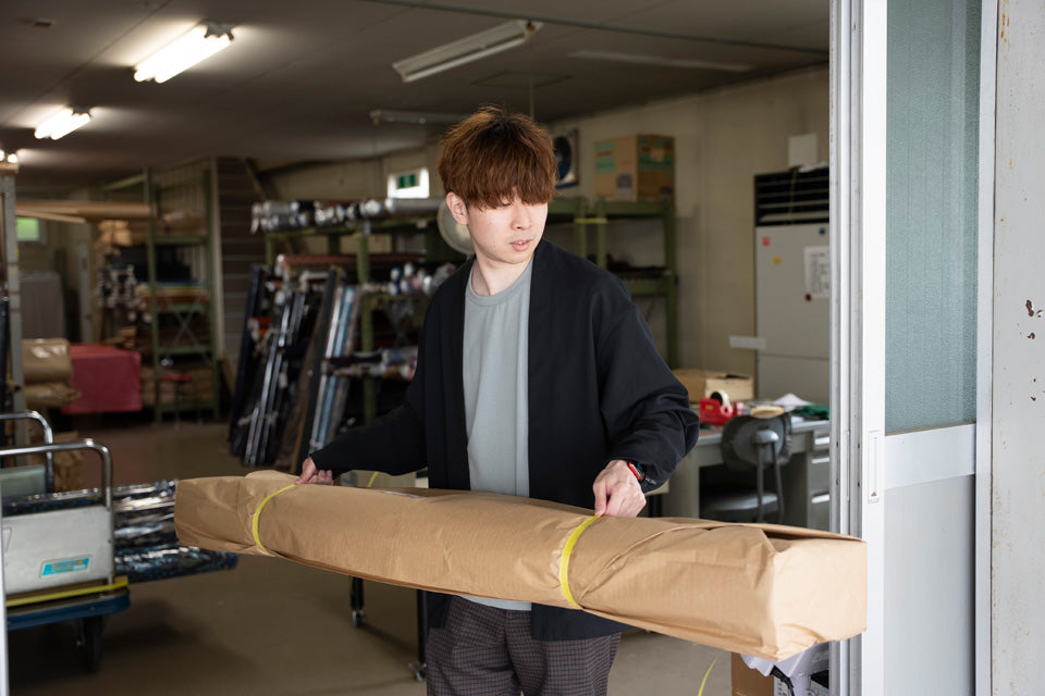 営業以外の仕事ですと、主な業務はオリジナル製品の生産管理です。弊社では傘生地を織ってから、縫製、組立てをしていますので、生産管理をするためには、織物を発注するための糸の手配から、UVや撥水などの後加工、傘の製造に至るまで、全行程を把握する必要があります。