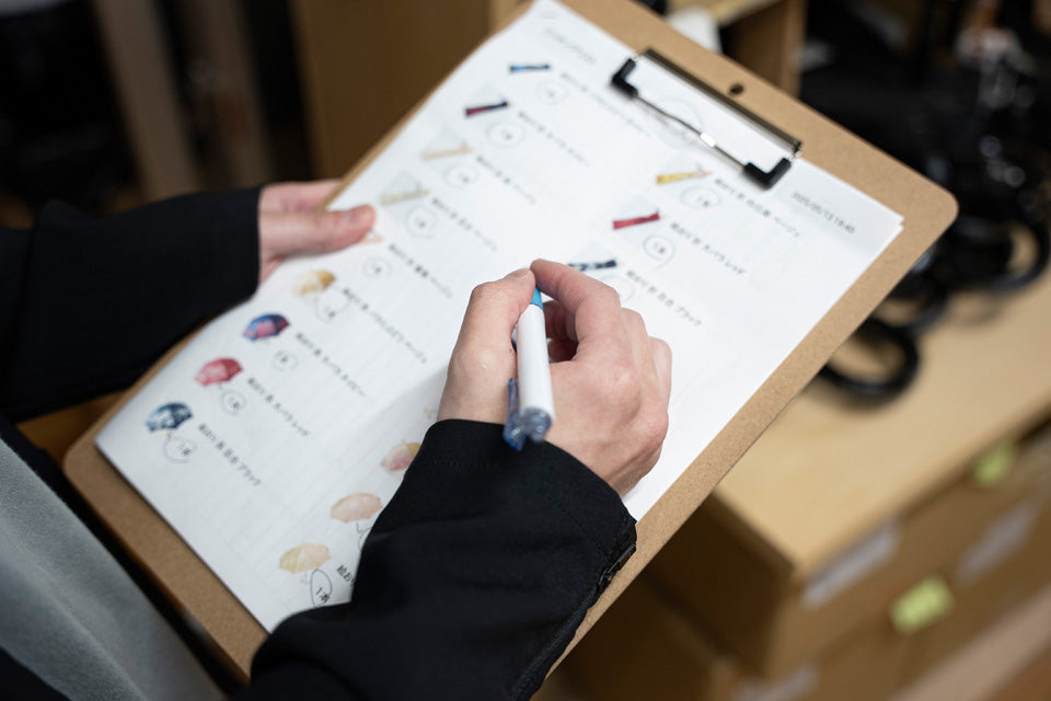 生産管理の強化です。計画生産体制は3年前から進めていますが、これまでは在庫を抱えすぎないようにと調整してきましたが、人気商品の傘の需要が集中した際に欠品をさせてしまったことがあります。お客様対応があるのでつい自分の業務を後回しにしがちですが、チームに迷惑がかからないように、もう少し工夫をしながら綿密な在庫管理を行っていきたいです。せっかく「今この傘がほしい!」と思ってくださったお客様に傘をお届けできないのは申し訳ないので、槇田商店の傘をもっとたくさんのお客様に届けられるよう、デジタル管理も含めてもっとチャレンジしていきたいですね。