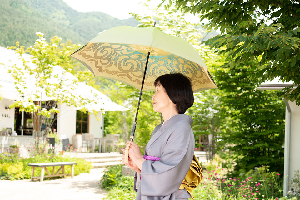 Our umbrellas are all made with woven jacquard textile, using beautiful yarns dyed and washed with pure water from mount fuji. Cut into the parts, sewed, built, all these processes by craftsmen’s skillful hands.