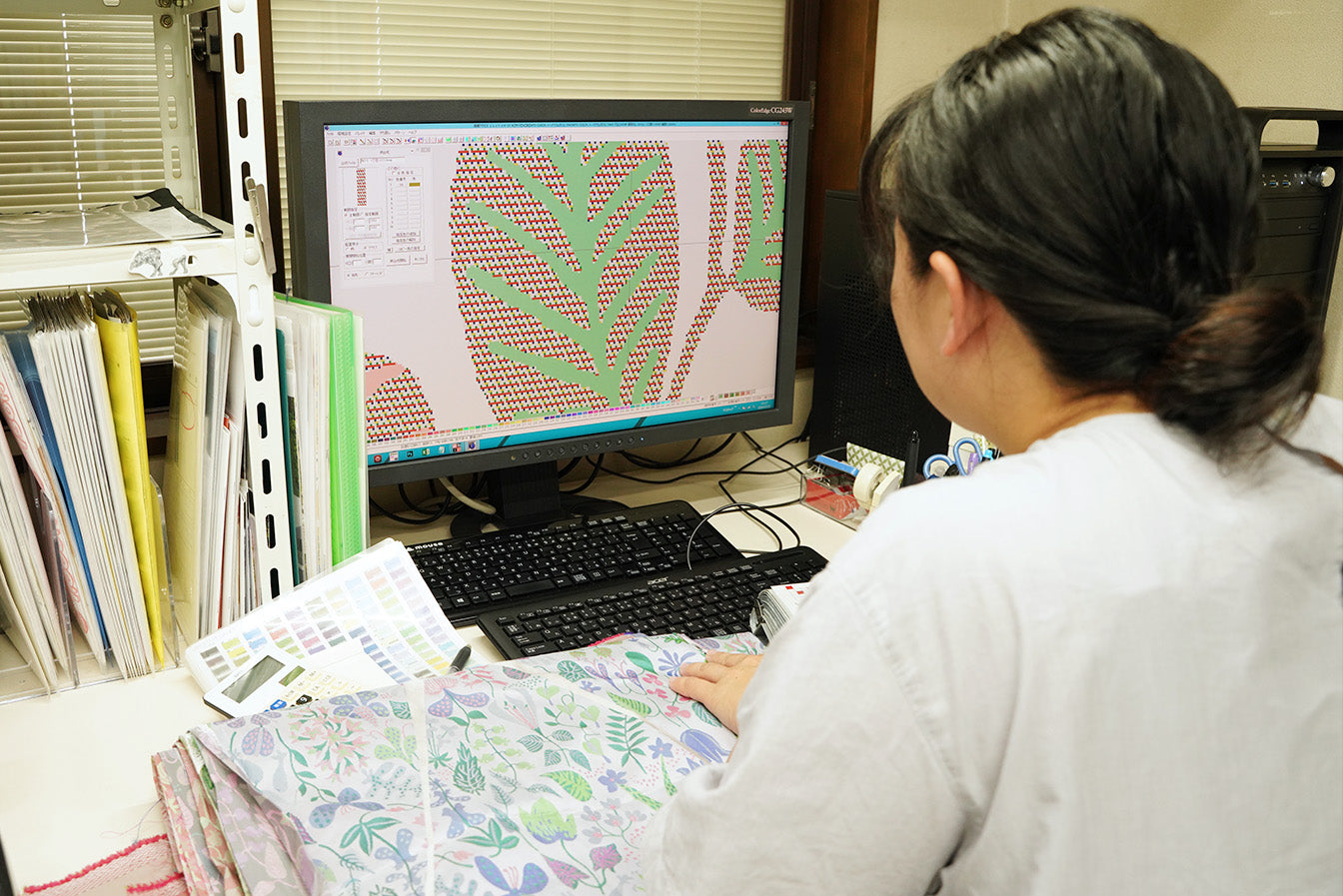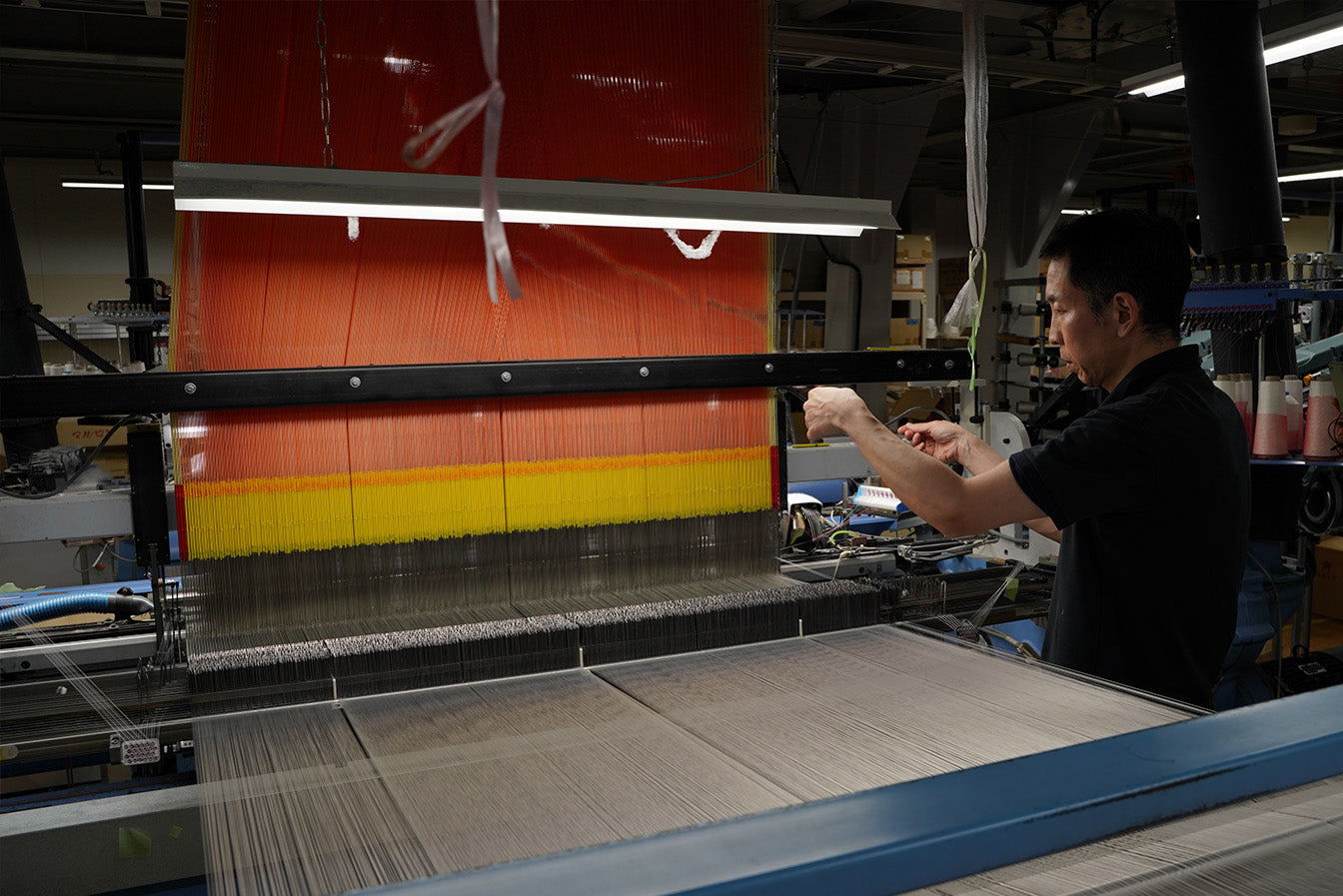 国内では他にあまりない大口ジャカード織機を保有し、それを使いこなすことができる職人集団です。
