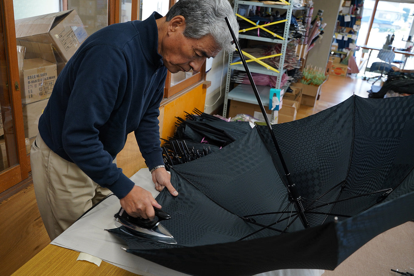 自社で織り上げた傘生地を裁断から縫製、組み立てまで全て手作業で行うチームです。
