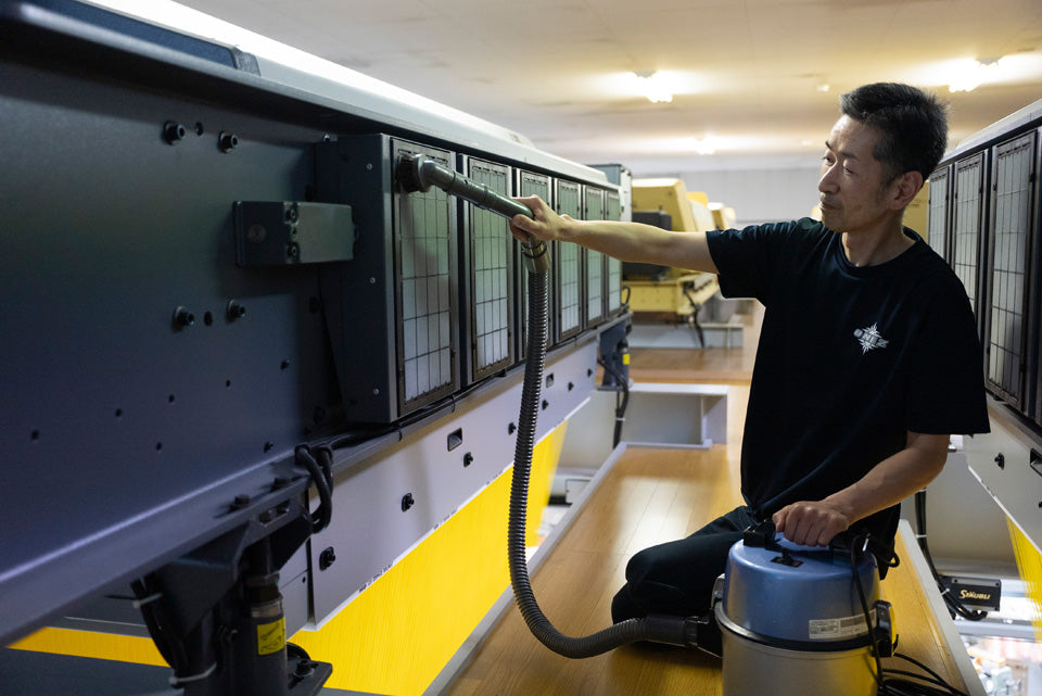 ジャカード装置は熱を持ってはいけないので冷却のファンがついているのですが、そのフィルターが埃で目詰まりするので、きれいに掃除しています。
