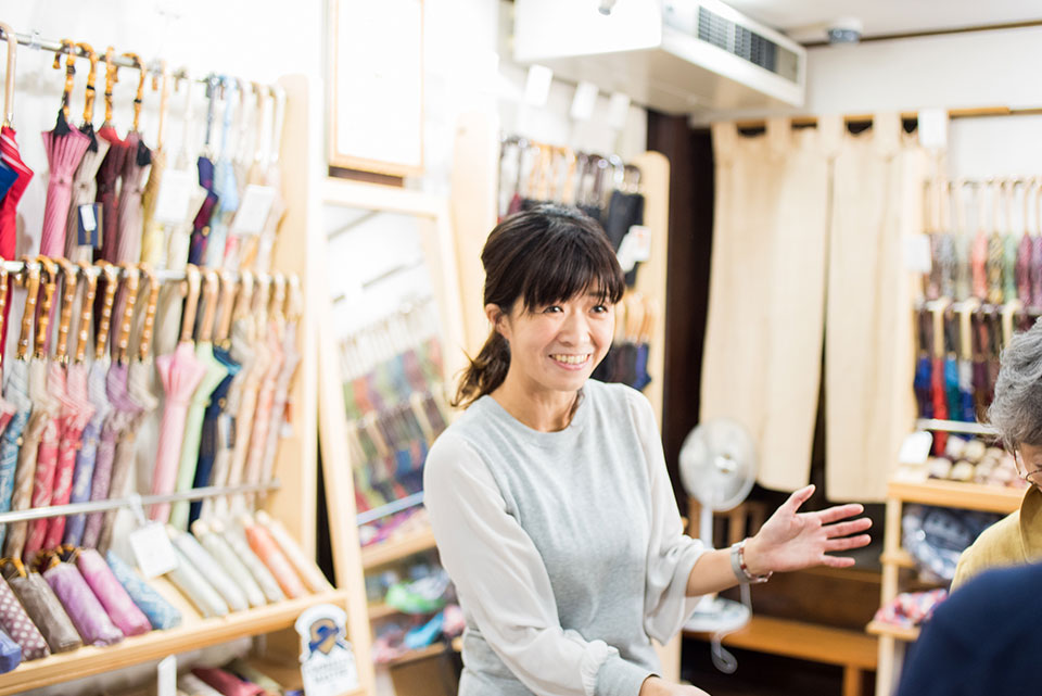 はるこさん:色々な年代の方がお越しくださっていて、20代から90代までいらっしゃいますし、リピーターも多いので、品揃えをもっと充実させていきたいです。傘生地を使ったエコバックも人気商品なのですが、生産が追いついていないので、今後その辺りを強化したいなと思います。