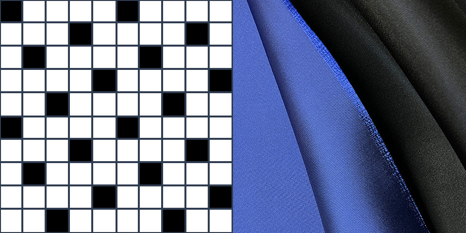 たて糸かよこ糸のどちらかの糸を目立ちにくく織る織組織。表にたて糸が見える場合は裏によこ糸(もしくはその逆)が見える生地に織りあがります。高級感のある光沢がある生地に仕上がります。