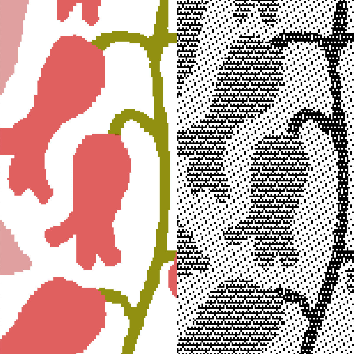 ・限られた糸の色数の組み合わせで柄の色彩をどのように表現するか?