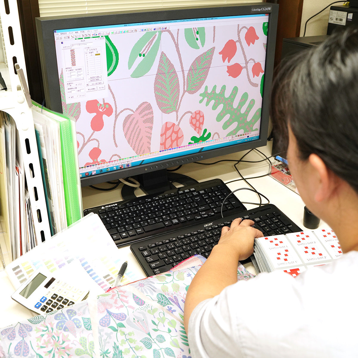 図案から織物に仕上げていくために総合的なバランスを考えながら織組織を考えていきます。