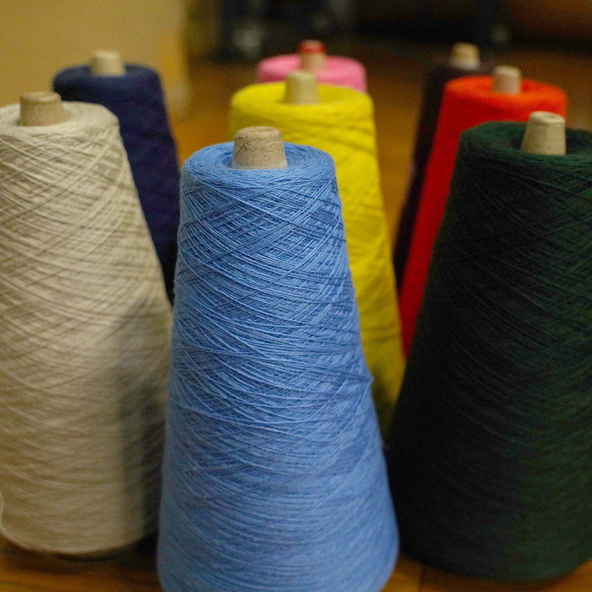 まずは、織物をどのような用途で使いたいかお知らせください。ジャケット、シャツ、傘、インテリアなど、商品の仕上がりイメージに合わせて糸をセレクトします。糸は、撚り合わせ方や細さにより、織物の柔らかさやシャリ感、厚みや風合いなどが変わります。また、コットン、 シルク、キュプラ、リネンなどの天然繊維、ポリエステル、ナイロンなどの化学繊維、長繊維と短繊維など、糸には様々な種類や機能がありますので、素材感についてはテキスタイルデザイナーにご相談ください。