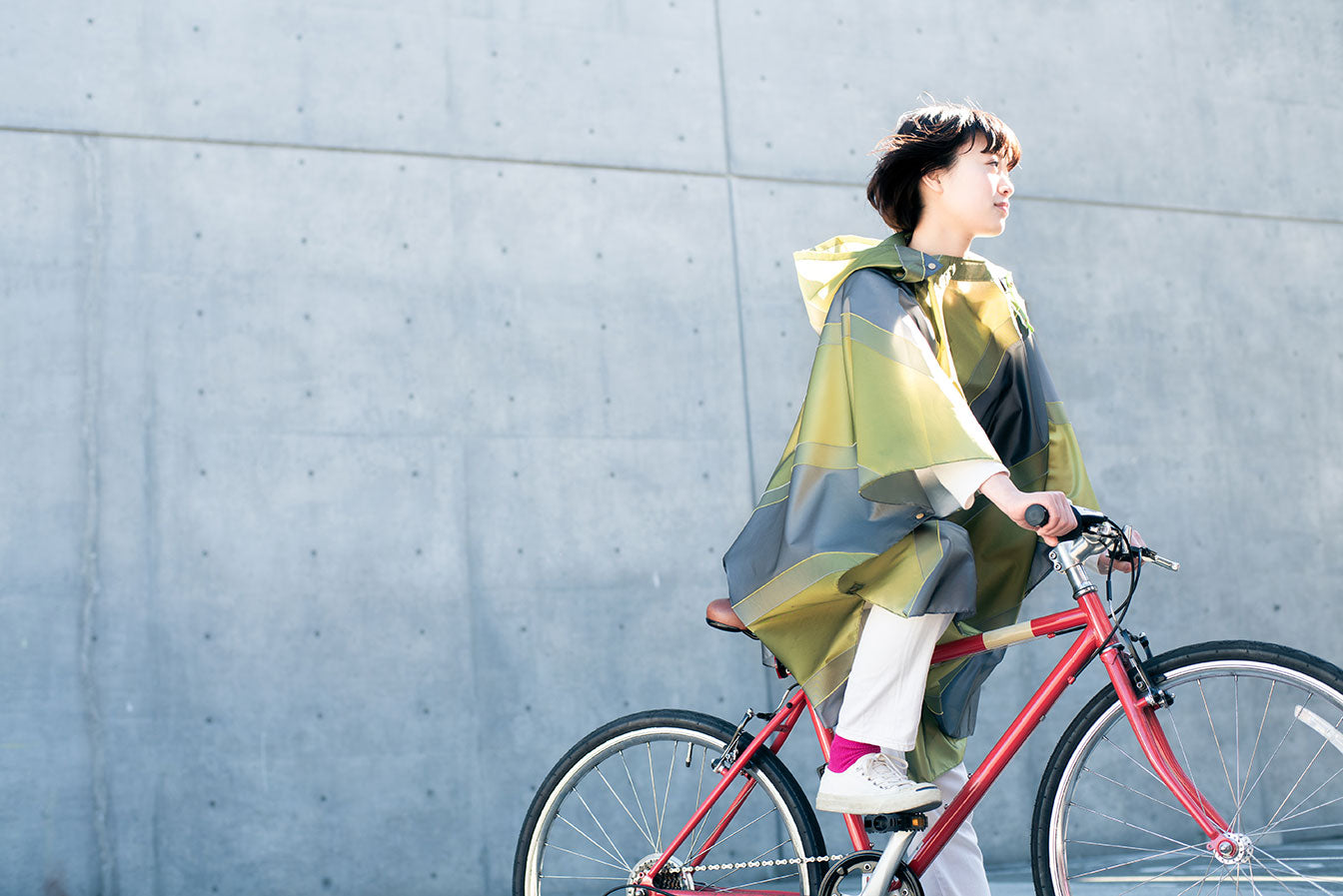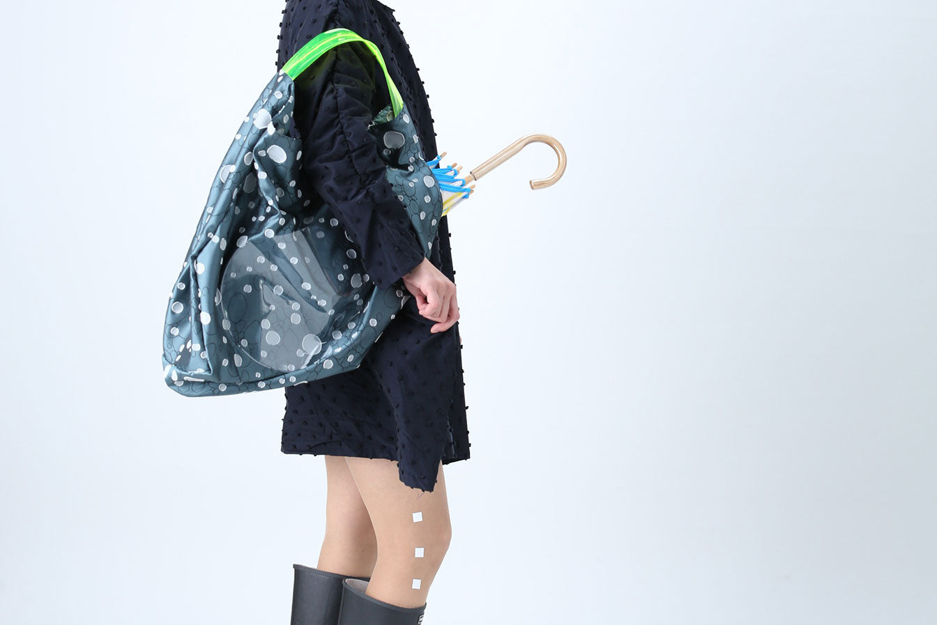 傘生地織物工場の持つノウハウをふんだんに用い、凹凸のある生地に防撥水加工を施した、一見雨具に見えない美しいファブリックです。折りたたみ傘、バッグ、ポンチョの3アイテムを展開しています。